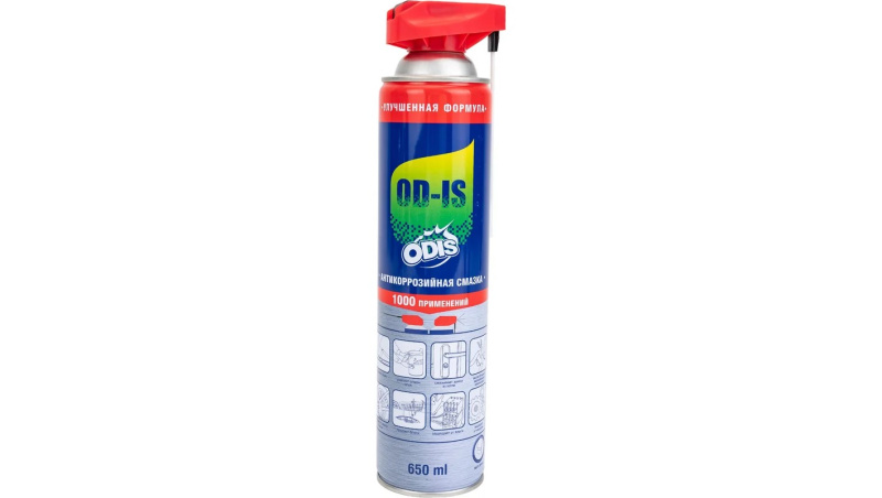 Антикоррозийная смазка-спрей ODIS De-Rust and Lubricating OD-IS 650 мл Ds4650 – это универсальное средство для профессионального и бытового применения. Благодаря своим проникающим и смазывающим свойствам помогает деталям и механизмам работать исправно и эффективно. Устраняет скрип, вытесняет влагу с электрических контактов и различных поверхностей, очищает от смолы, клея, жира и ржавчины. Оставляет защитную пленку против коррозии. Проникает в ржавчину и освобождает болты и гайки, освобождает и смазывает движущиеся части механизмов.