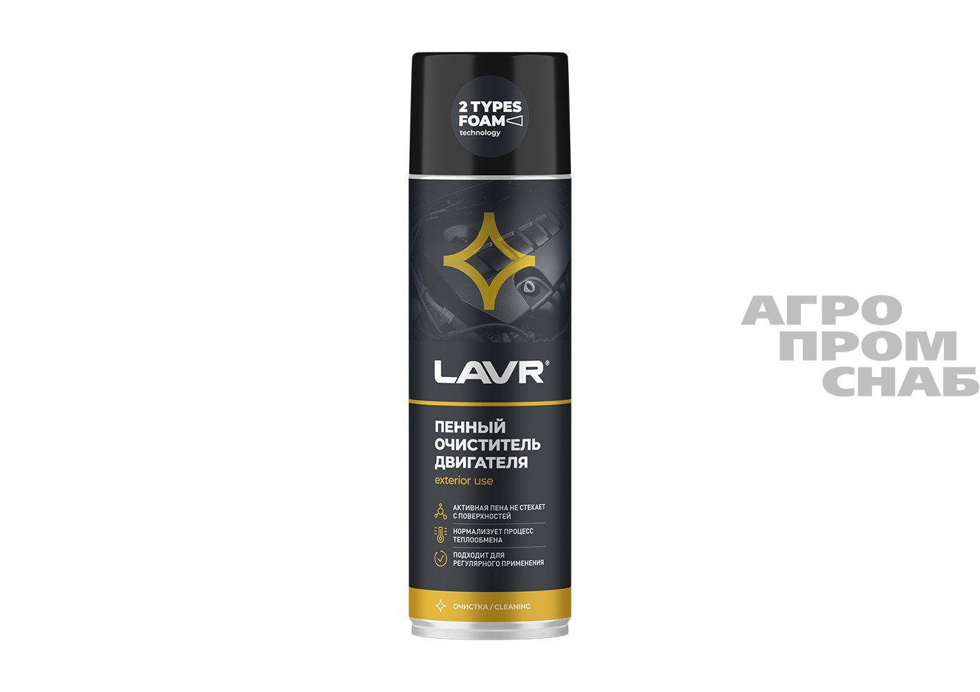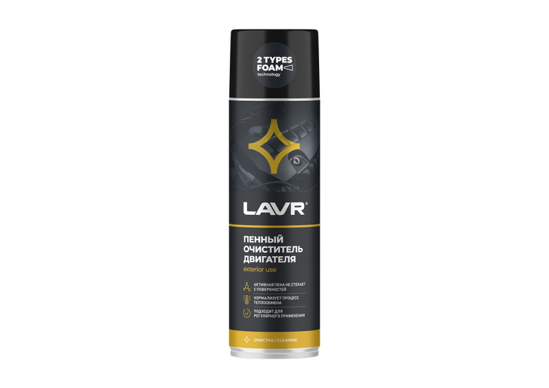 Эффективно очищает внешнюю поверхность двигателя и подкапотного пространства от всех видов эксплуатационных загрязнений