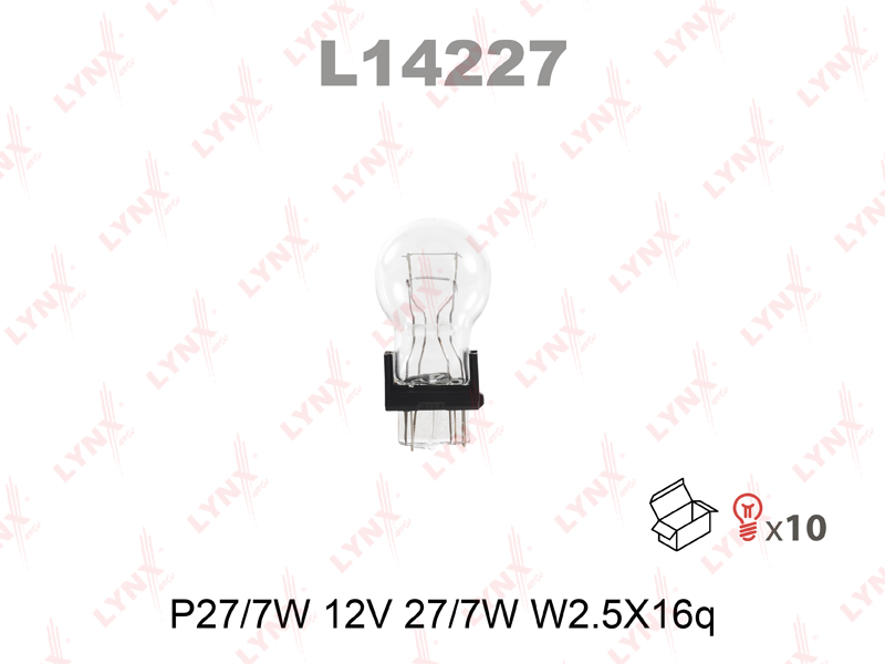 Автолампа P27/7W 12V W2,5X16Q LYNXauto L14227