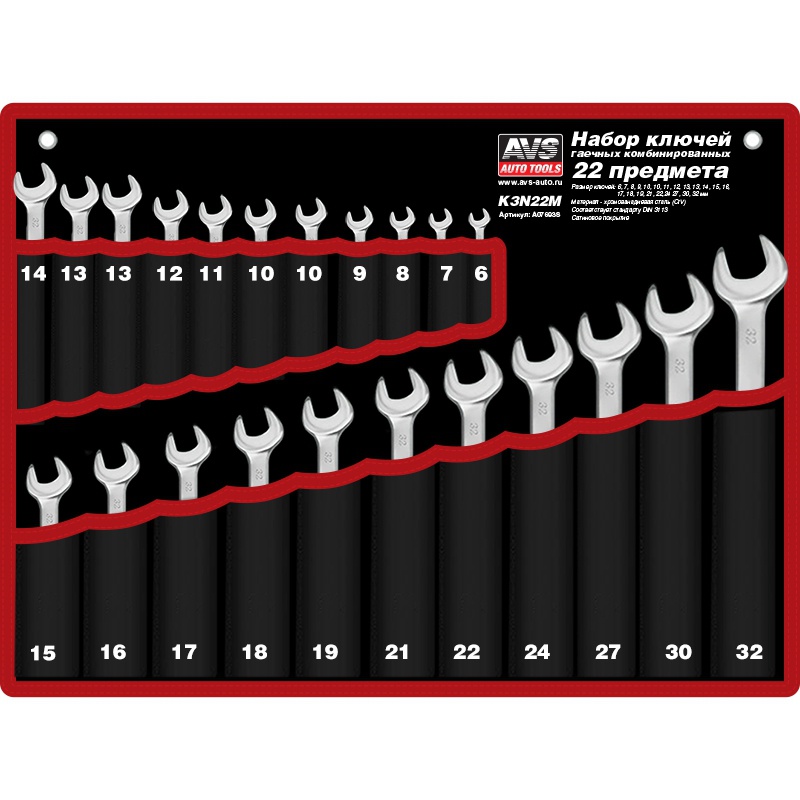 Набор ключей гаечных комбинированных в сумке (6-32 мм) (22 предмета) AVS K3N22M
