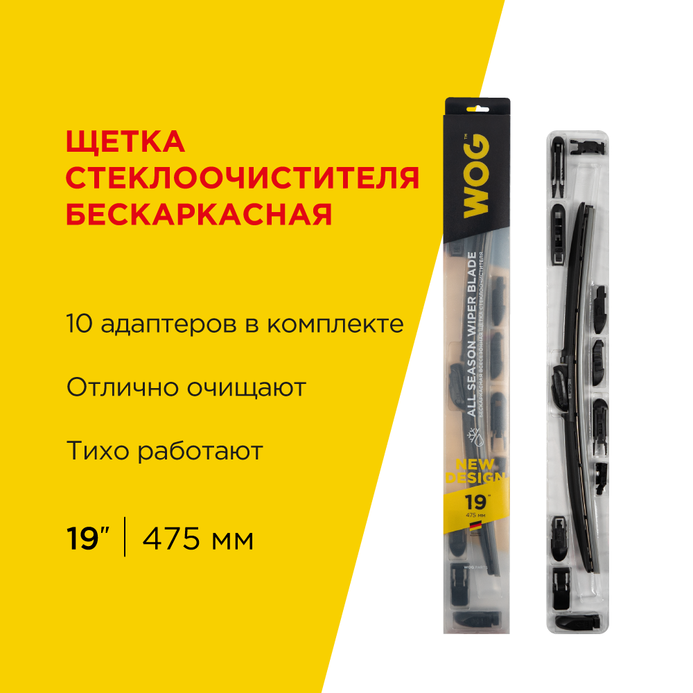Щетка стеклоочистителя бескаркасная WOG 19"/480 мм WGC1405 с компл. адапт. (10 шт.) WOG