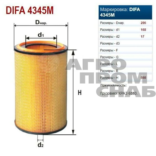 Фильтр воздушный 4345М DIFA (Беларусь)