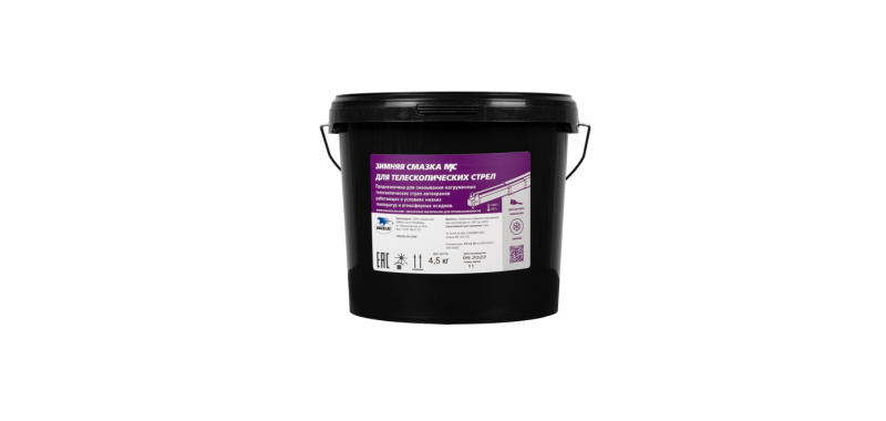 Смазка зимняя для телескопических стрел, изготовлена на основе кальциевого загустителя и специально подобранного минерального масла с высокой вязкостью.
